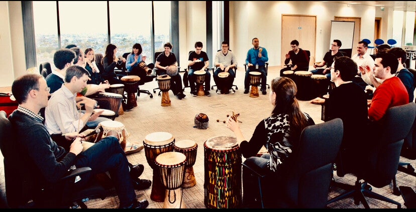 The team really enjoyed learning to play the rhythms and building on it to create a unique sound.I was delighted to see everyone relaxing after a long week of meetings, it was the perfect wind down and a great way to have some fun