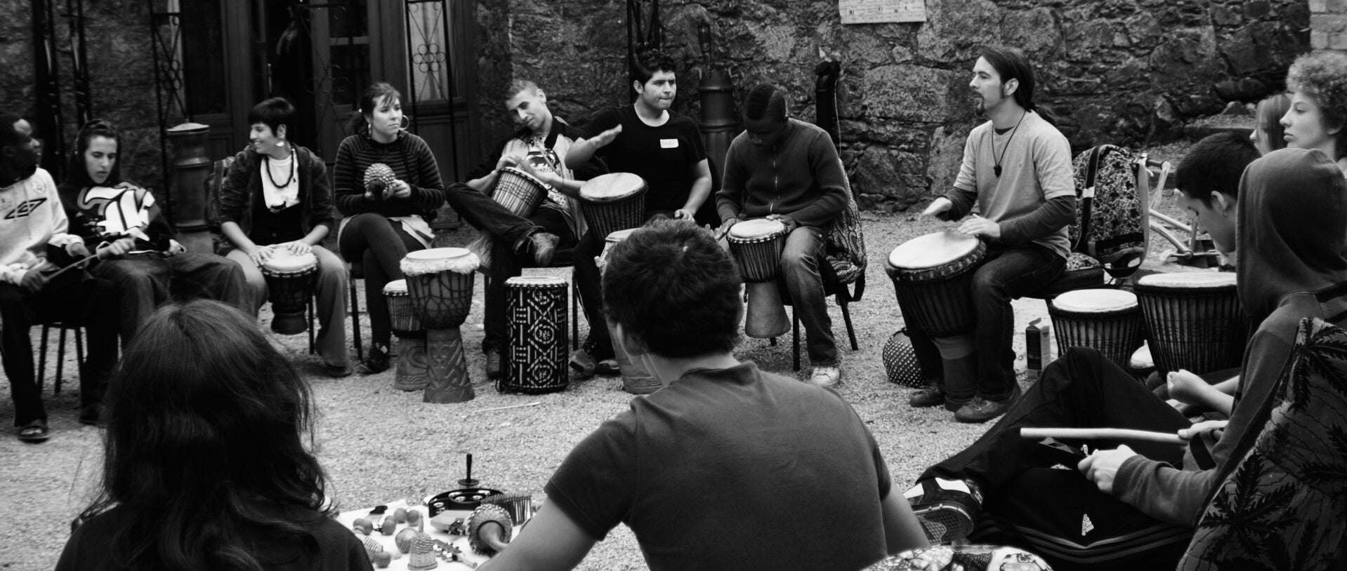 During a workshop people can learn about the different techniques used to produce different sounds and rhythms with many instruments.